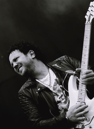 Modern arched top, neck thru' custom guitar with Floyd Rose tremolo system and pair of humbucker pickups in pure white high gloss body color. Guitar's body is customized with CLASCUT cutaway and pure white high gloss finish. Fretboard is made of special Finnish birch wood. Selected BKP Nailbomb humbuckers deliver great sound for rock and metal style.